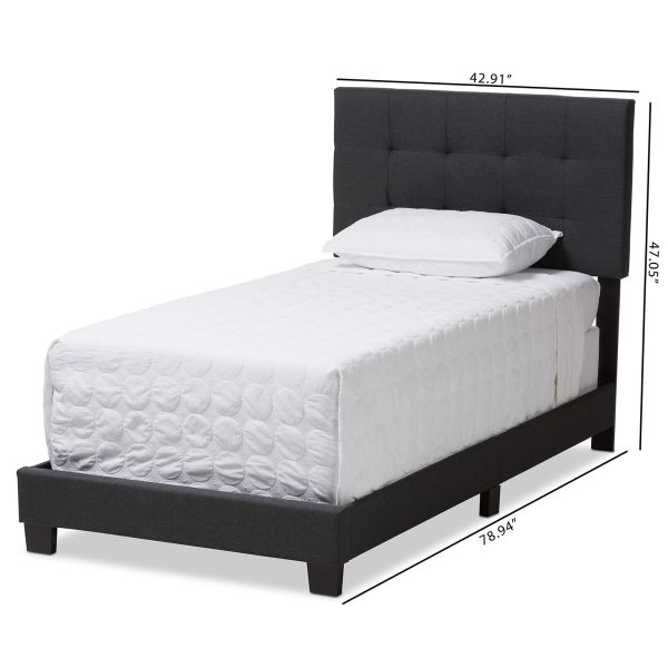 | Dimensions | Dimensions: 47.05" High x 42.91" Wide x 78.94" Deep; Headboard: 47.05" High x 42.91" Wide x 3.94" Thick; Siderail: 6.1" High x 35.83" Long x 0.79" Thick; Footboard: 9.65" High x 41.34" Long x 2.17" Thick; Slats: 1.77" Wide x 39.25" Long x 0.71" Thick; Top of Slat: 8.11" High; Legs: 3.54" High; Inside Dimensions (Mattress Size): 37" Wide x 74" Deep |