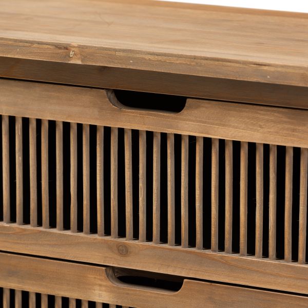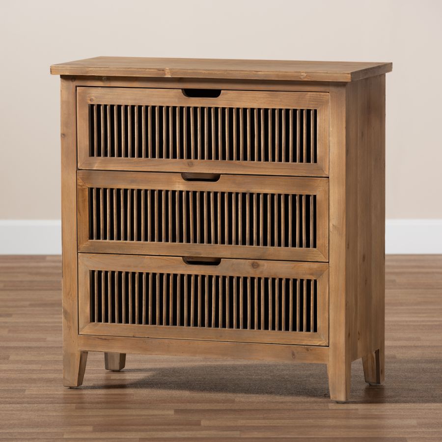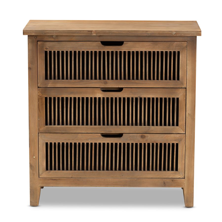 Clement Rustic Transitional Medium Oak Finished 3-Drawer Wood Spindle Storage Cabinet