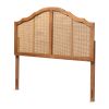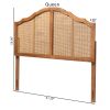 Iris Vintage Classic and Traditional Ash Walnut Finished Wood and Synthetic Rattan Queen Size Arched Headboard