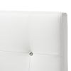 Take the luxurious look of the Kirchem headboard and up the elegance factor with crystal buttons. Like its companion headboard, our white faux leather Kirchem headboard crystal boasts button-tufted distinction that contrasts sharply with just about any wall. Rubberwood frame with foam padding provides added comfort. Built in Malaysia, the headboard requires assembly.