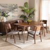 You're reviewing: Alston Mid-Century Modern Grey Fabric Upholstered and Walnut Brown Finished Wood 5-Piece Dining Set