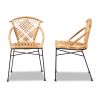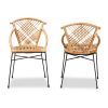 Pro Modern Bohemian Natural Brown Rattan and Black Metal 2-Piece Dining Chair Set
