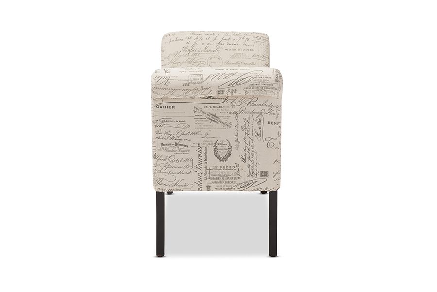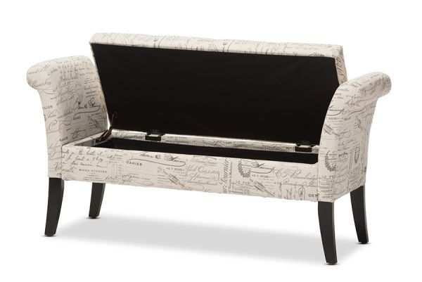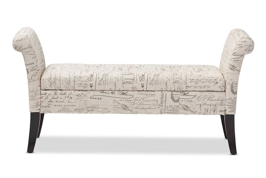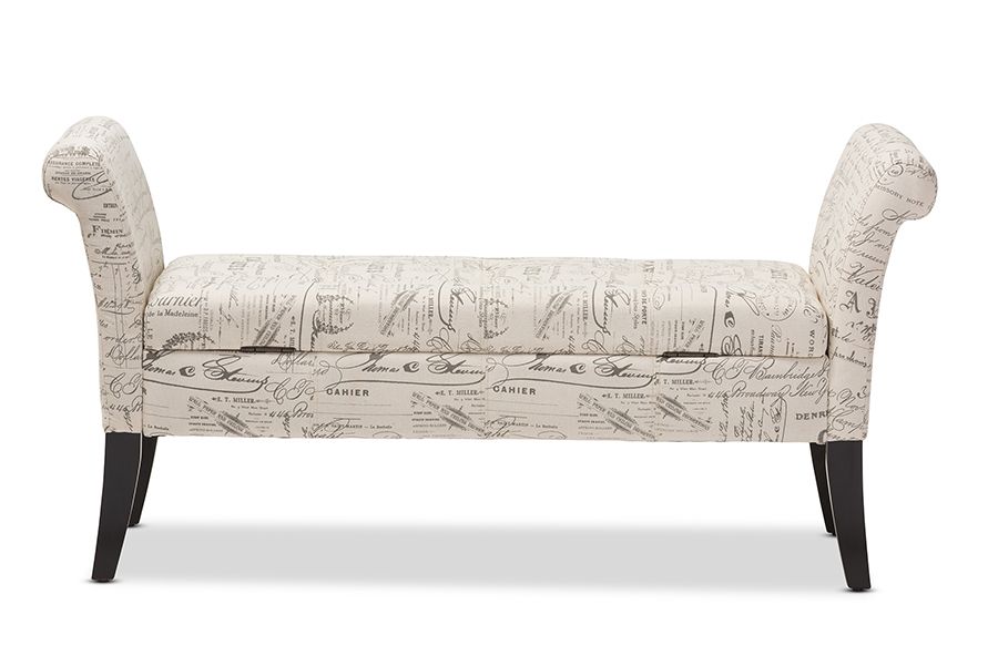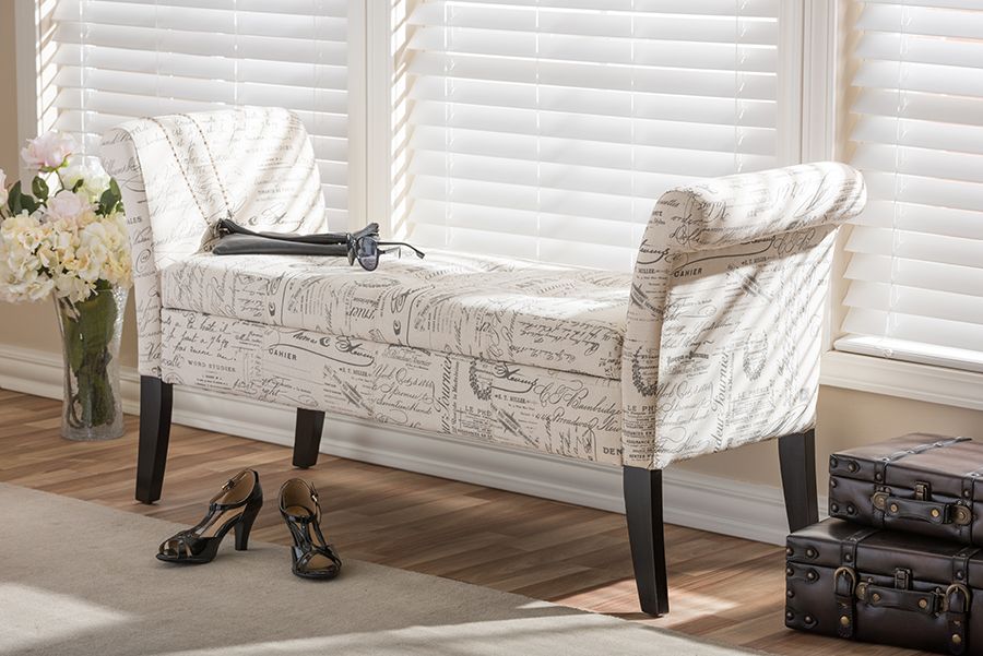 Avignon Script-Patterned French Laundry Fabric Storage Ottoman Bench