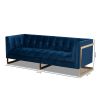 Ambra Glam and Luxe Royal Blue Velvet Fabric Upholstered and Button Tufted Gold Sofa with Gold-Tone Frame