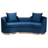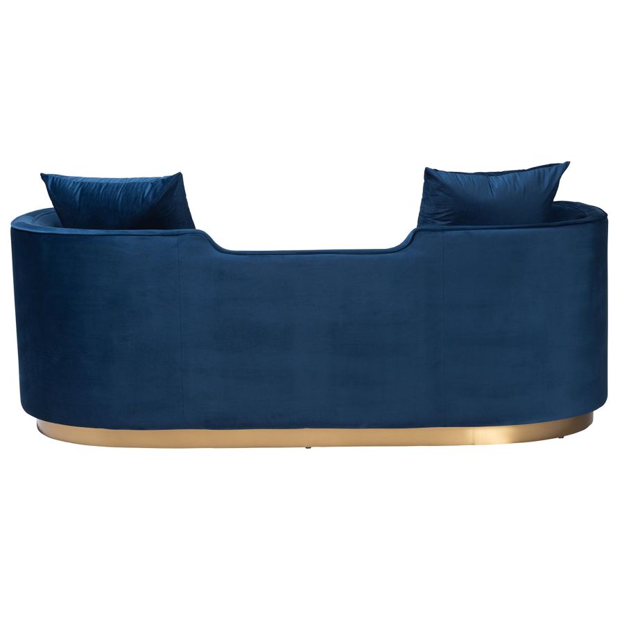 Deserae Glam and Luxe Navy Blue Velvet and Brushed Gold Metal Sofa