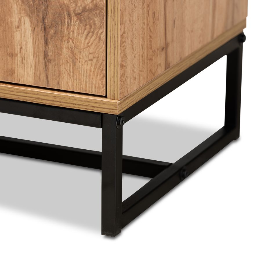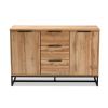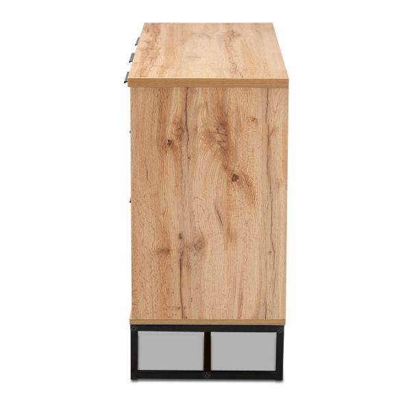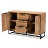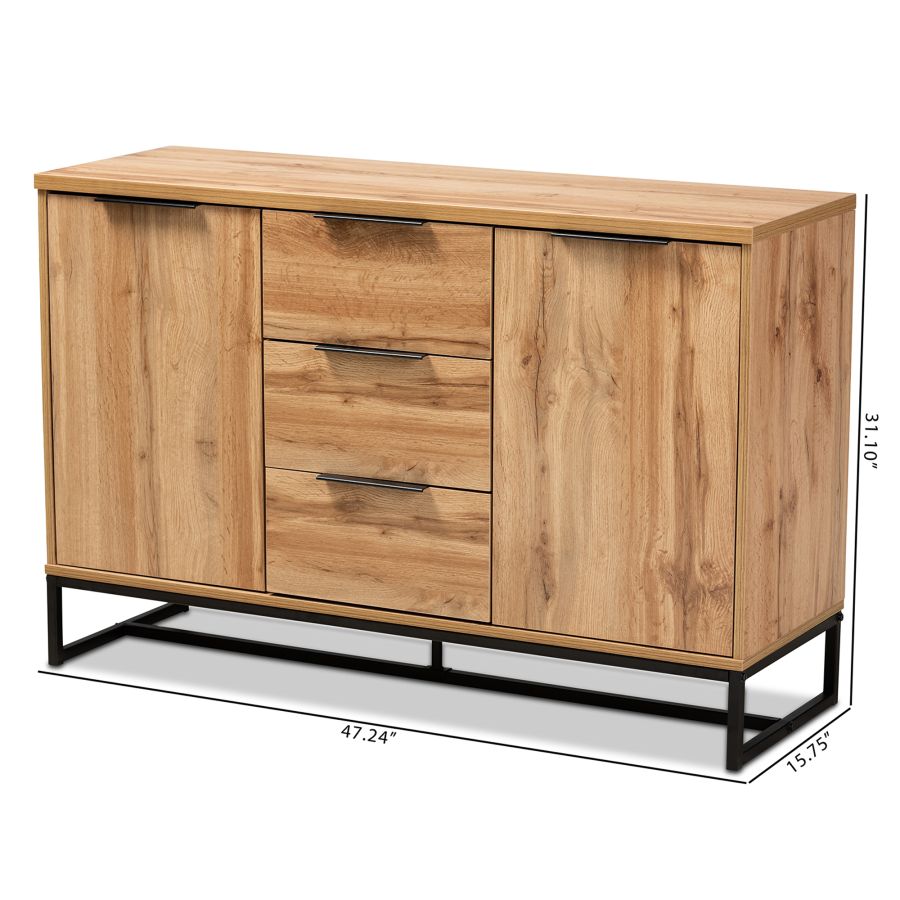 Reid Modern and Contemporary Industrial Oak Finished Wood and Black Metal 3-Drawer Sideboard Buffet
